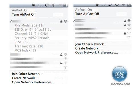 هذا أيضاً خيار AirPort قبل وبعد الضغط على زر option :