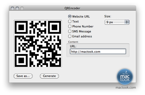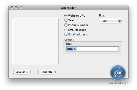 الجميل في هذا الموضوع أنه هناك تطبيق متوفر في متجر البرامج Mac AppStore لهذه التقنية وتستطيع من خلاله إنشاء الباركود الخاص بك ووضعه في أي مكان تريده ، البرنامج يوفر العديد من الخيارات لإنشاء RQ Code مثل : WebsiteURL , TEXT , Phone Number , SMS , Email . وتستطيع إنشاء الباركود بكل سهولة لأي معلومات تودها والجميل أيضاً أن التطبيق مجاني