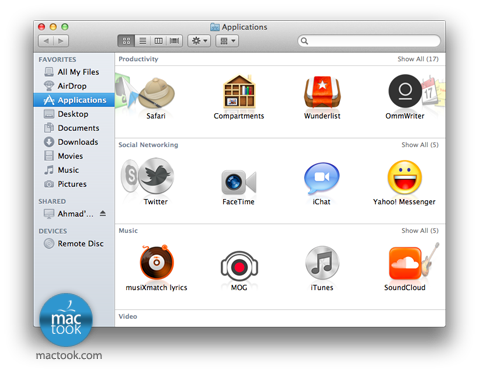 – التلميحة الأولى : من الميزات الموجودة في Lion إعادة ترتيب البرامج وفق تصنيفاتها بشكل تلقائي ، النمط التقليدي :