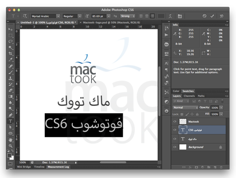 كما نلاحظ في الصور دعم اللغة العربية في Adobe Photoshop CS6