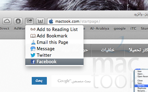 هذا نموذج للمشاركه من Safari على سبيل المثال :